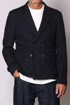 Giacca doppiopetto, tasche a toppa sul davanti, spacco centrale sul retro. Composizione: 99% poliestere, 1% elastam. Il modello è alto 180 cm pesa 74 kg indossa taglia 48.