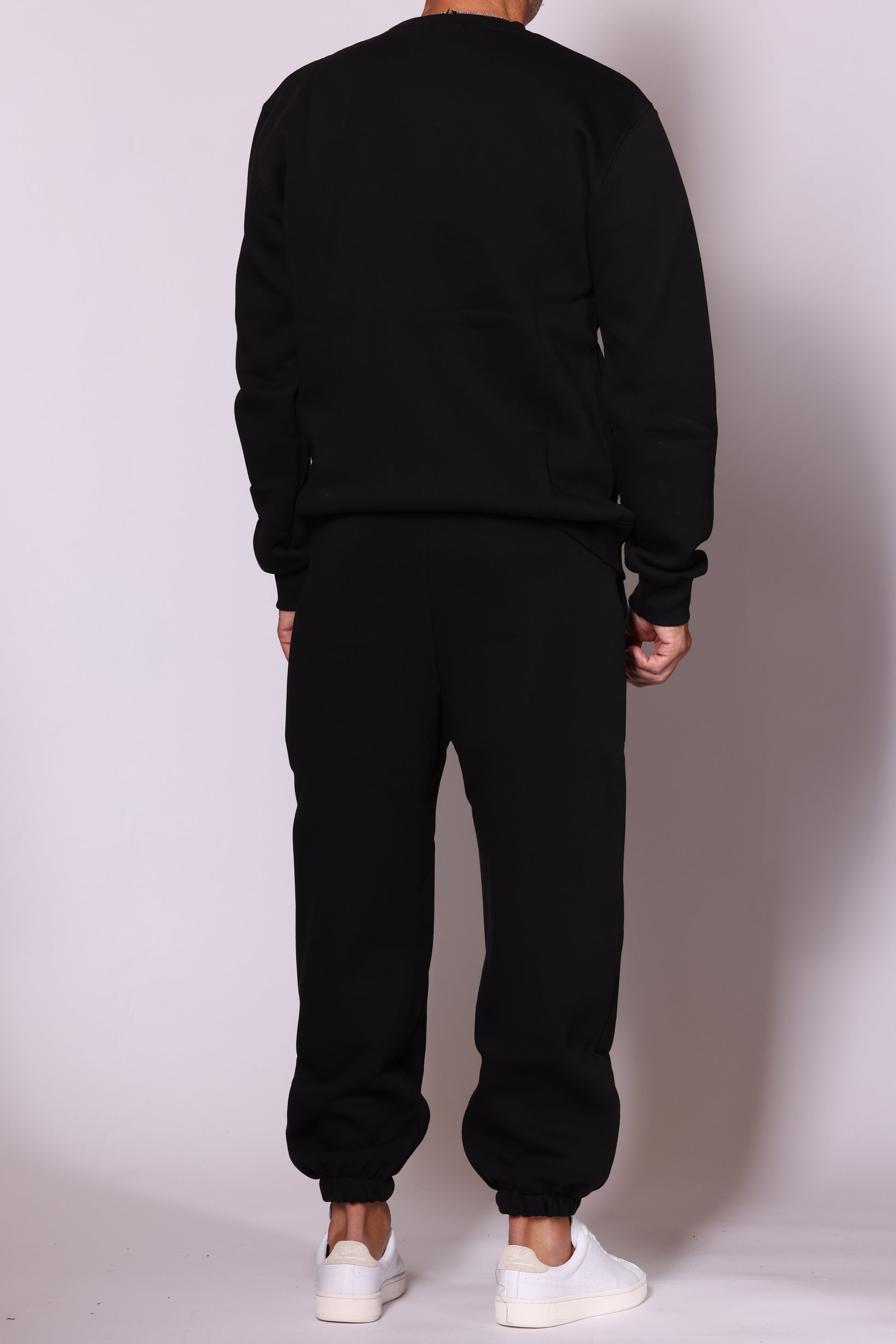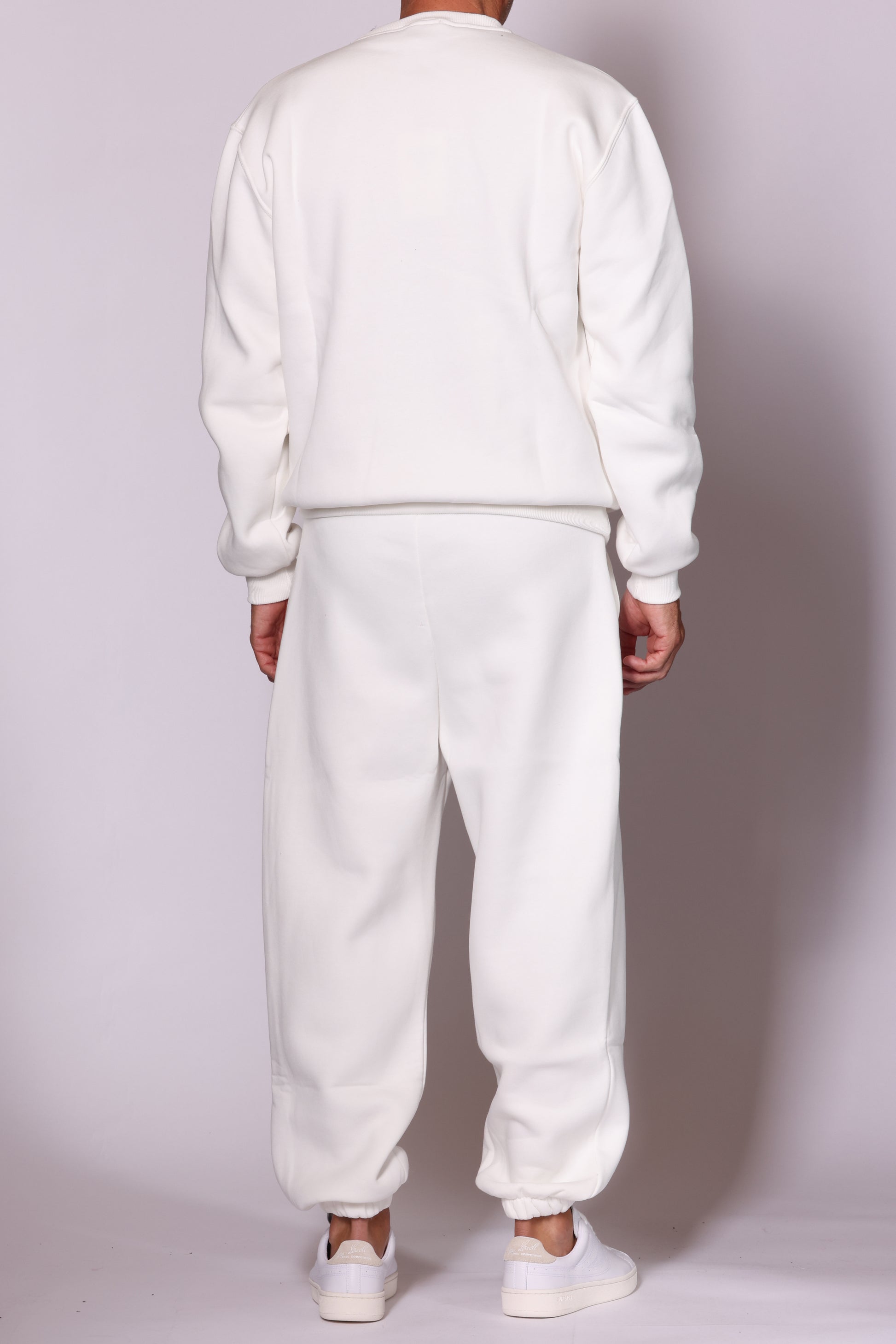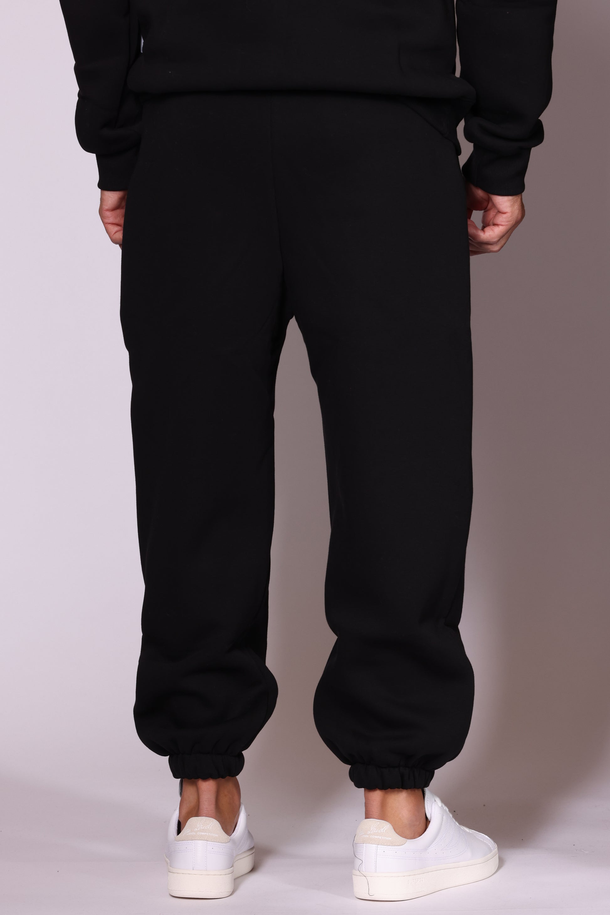Pantalone in felpa, coulisse con laccetti in vita e polsino sul fondo. Interno Pile. Composizione: 65% cotone, 35% poliestere. Il modello è alto 180 cm pesa 74 kg indossa taglia L.
