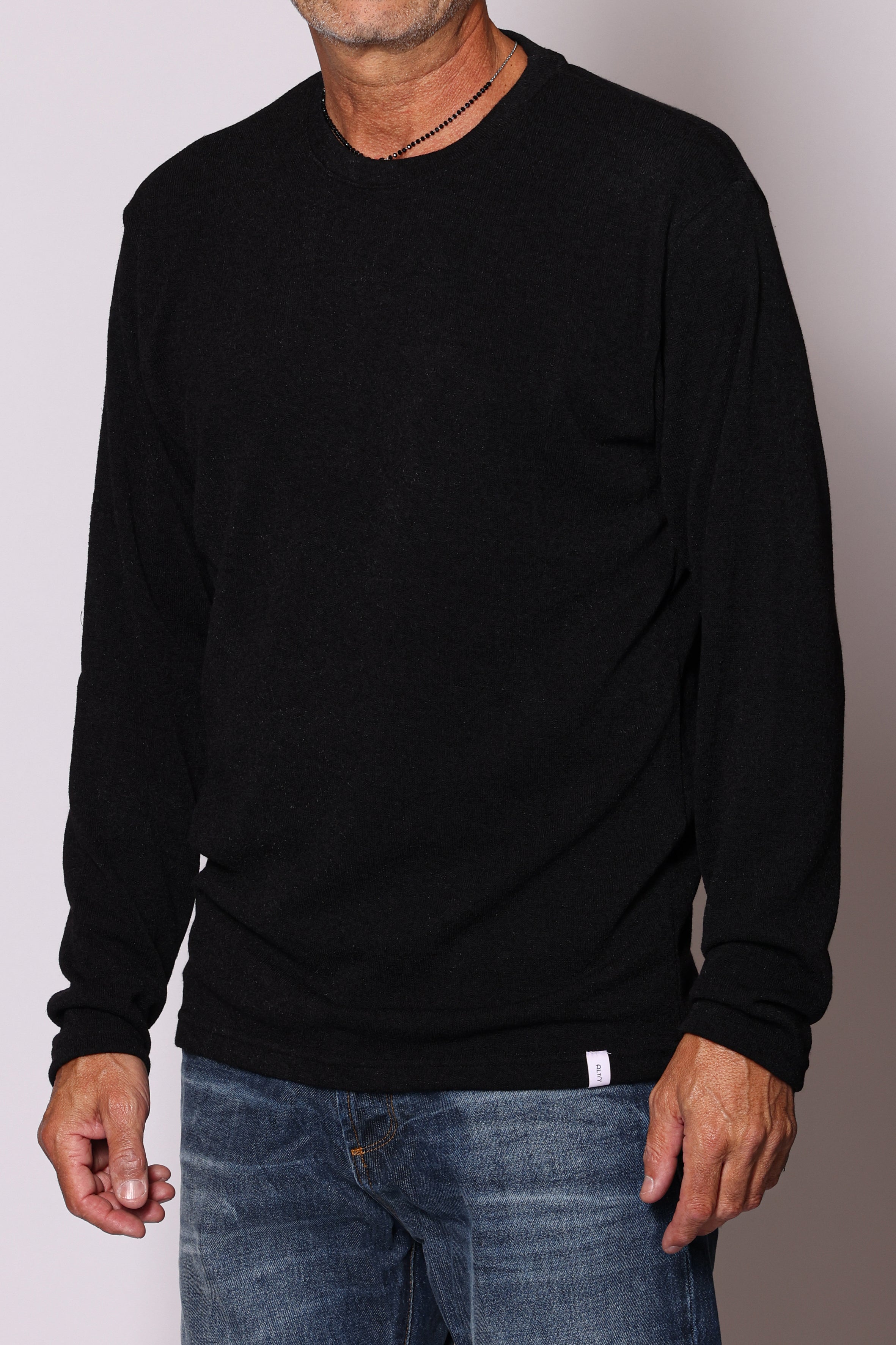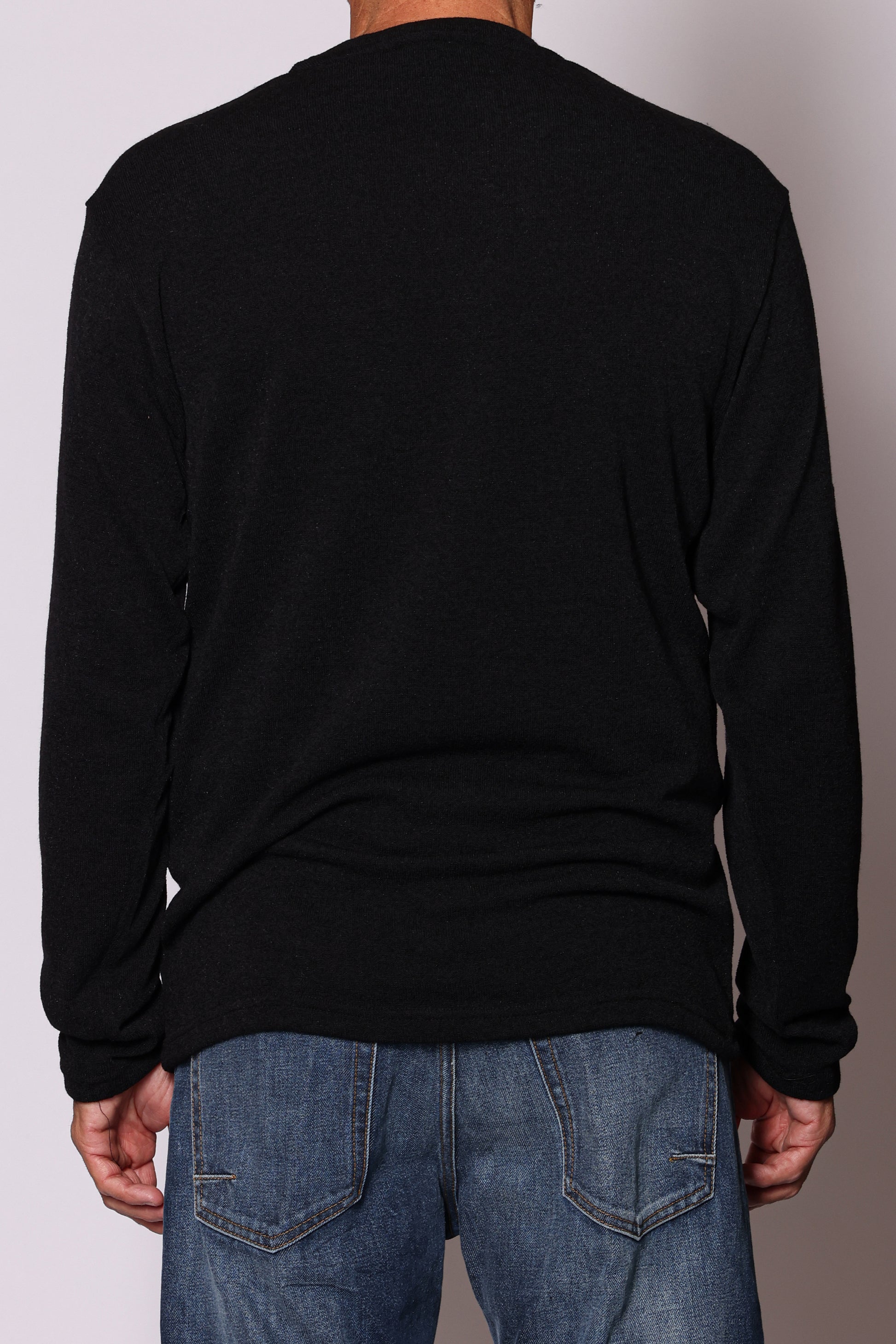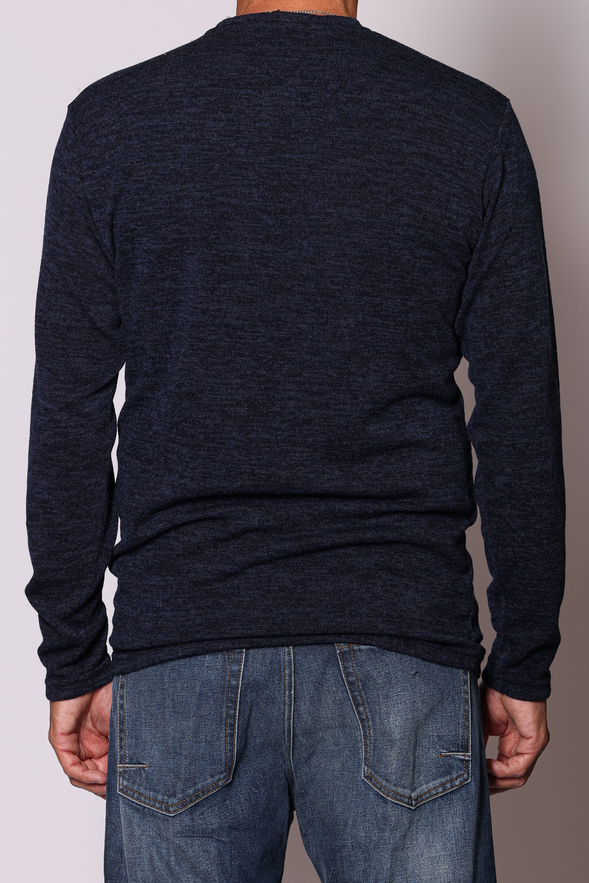Maglia girocollo basica. Composizione: 96% poliestere, 4% elastam. Il modello è alto 180 cm pesa 74 kg indossa taglia L.