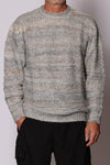 Maglia girocollo multicolor. Composizione: 65% acrilico, 21% lana, 14% poliammide. Il modello è alto 180 cm pesa 74 kg indossa taglia L.