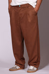 Pantalone japan over, tessuto effetto camoscio, pences sul davanti, chiusura con bottone e zip; tasche a filo laterali e posteriori. Composizione: 92% poliestere, 8% elastam. Il modello è alto 180 cm pesa 74 kg indossa taglia 48.