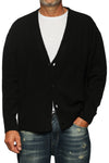 Cardigan scollo a V, chiusura con bottoni. Composizione:60% acrilico, 14% poliester, 10% poliamide, 8% lana, 8% viscosa. Il modello è alto 180 cm pesa 74 kg indossa taglia L.