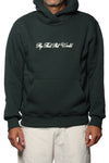 Felpa con cappuccio, stampa fronte e retro, tasca a marsupio sul davanti; interno in pile. Composizione: 100% cotone. Il modello è alto 180 cm pesa 74 kg indossa taglia M.