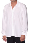 Camicia tessuto leggermente goffrato con colletto e scollo a V. Chiusura con bottoni a vista; spacchetti laterali e fondo posteriore leggermente più lungo. Composizione: 72% viscosa, 28 % poliammide. Il modello è alto 180 cm pesa 74kg indossa taglia L.