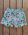 Costume mare fantasia con coulisse e laccetti in vita, tasche a filo laterali, spacchetti sul fondo. Composizione: 100% poliestere.