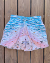Costume mare fantasia con coulisse e laccetti in vita, tasche a filo laterali, spacchetti sul fondo. Composizione: 100% poliestere.