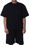 T-Shirt over in felpa manica corta con taschino a toppa sul davanti. Composizione: 85% cotone, 15% poliestere. Il modello è alto 180 cm pesa 74 kg indossa taglia L.