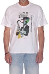 T- Shirt girocollo con stampa sul davanti. Composizione: 100% cotone. Il modello è alto 180 cm pesa 74 kg indossa taglia L.