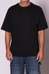 T-shirt girocollo over interloc. Composizione: 100% cotone. Il modello è alto 180 cm pesa 75 kg indossa taglia L.