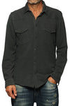 Camicia felpa western, chiusura con bottoni a pressione; fondo leggermente stondato con rifinitura a taglio vivo. Composizione: 95% cotone, 5% elastam. Il modello è alto 180 cm pesa 74 kg indossa taglia L.