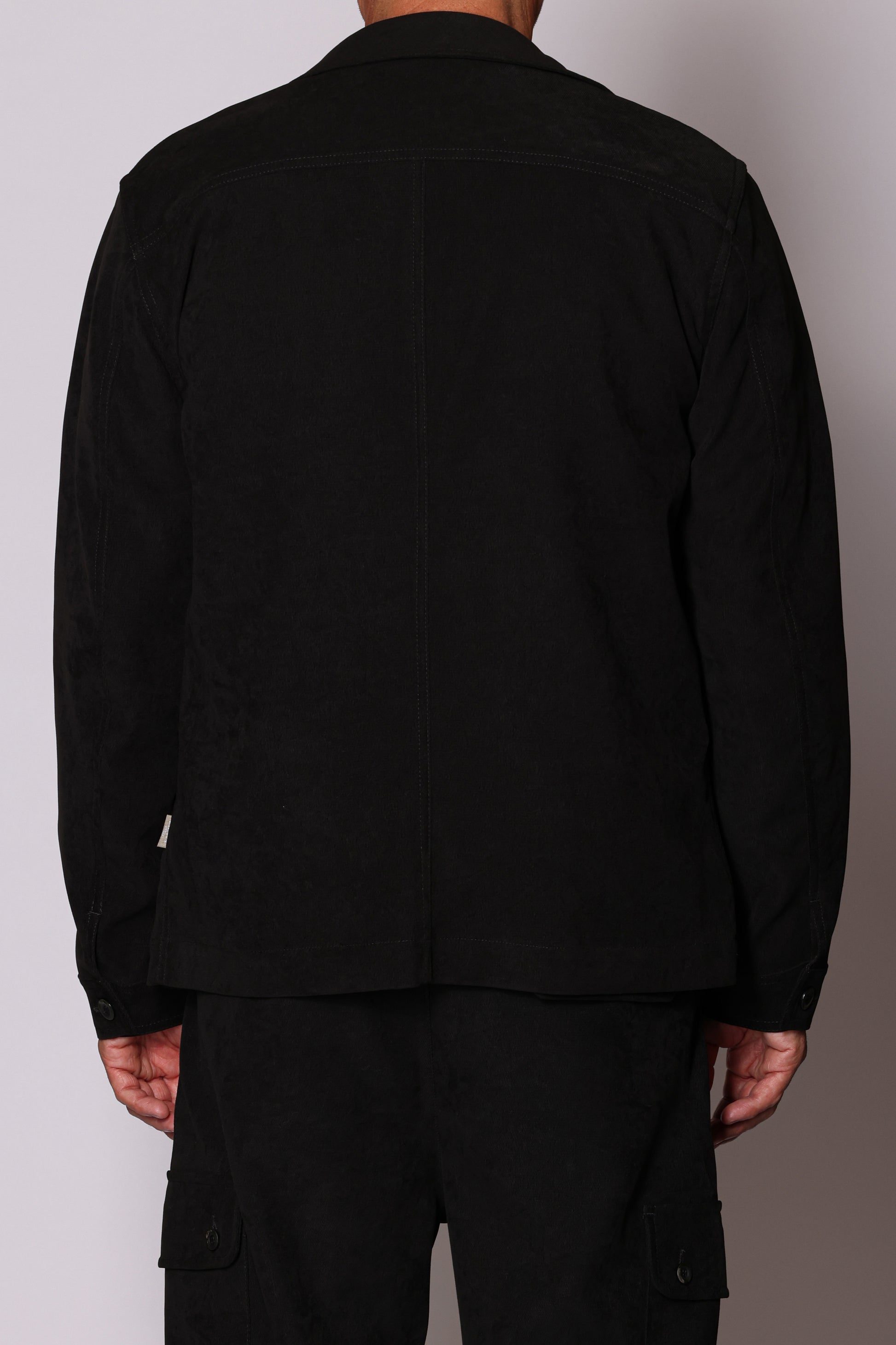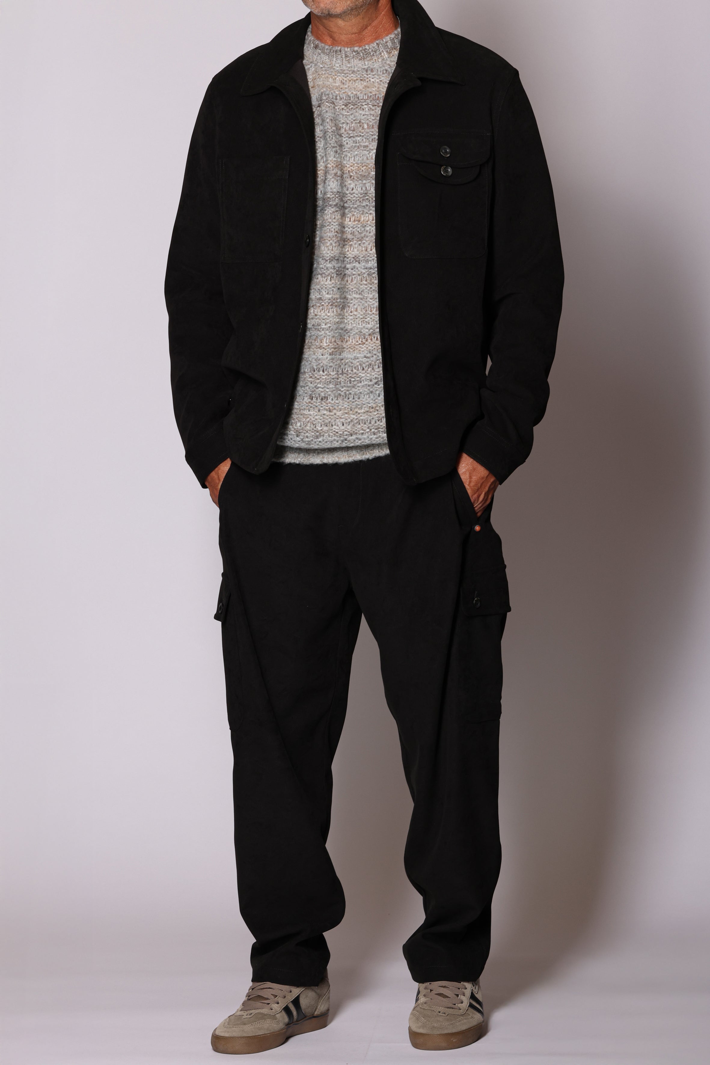 Camicione in velluto a coste strette. Chiusura centrale con bottoni, tasche a toppa sul davanti. Composizione: 97% poliestere, 3% elastam. Il modello è alto 180 cm pesa 74 kg indossa taglia L.