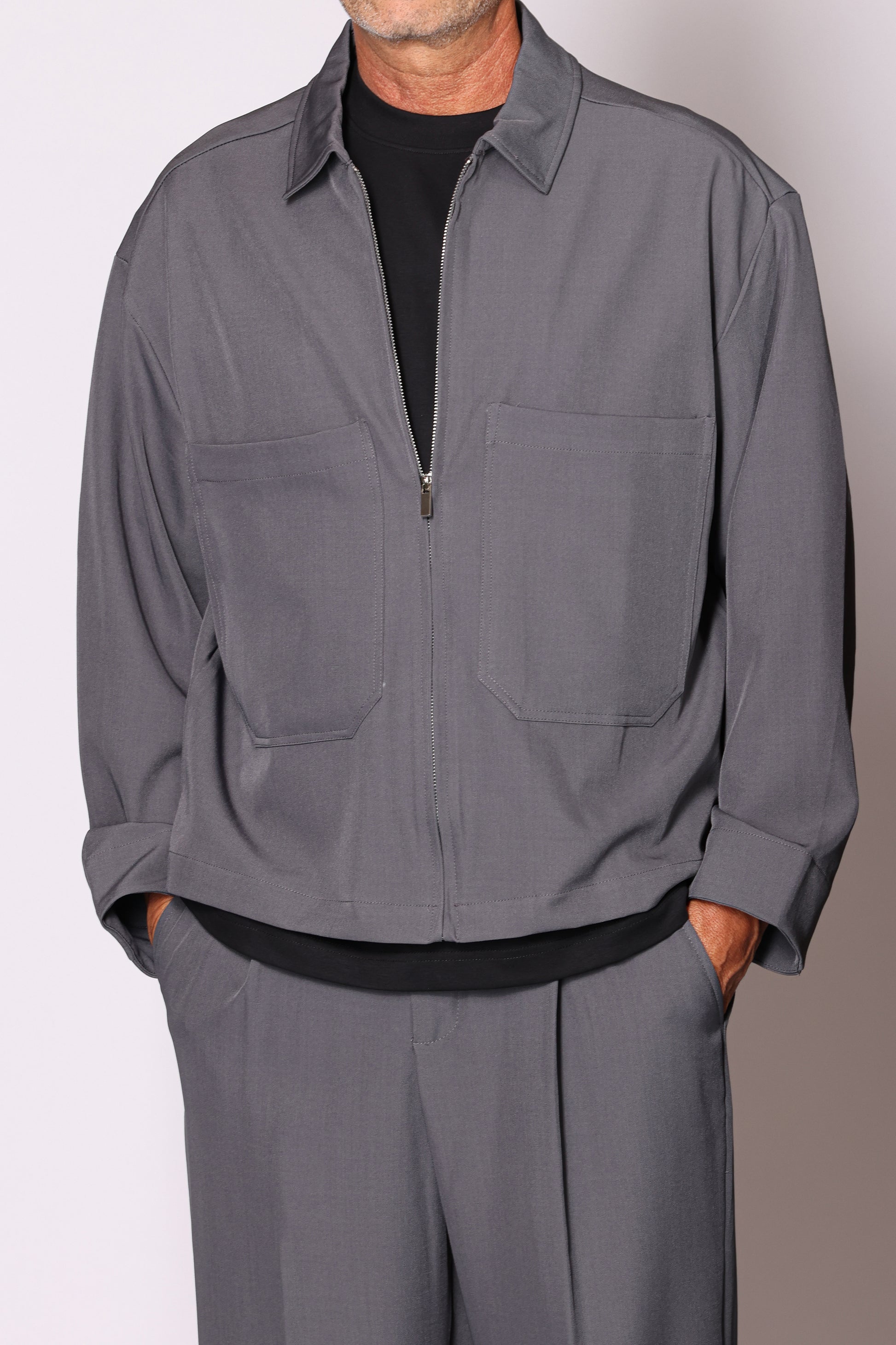 Camicione chiusura centrale con zip, tasche a toppa sul davanti. Vestibilità over. Composizione: 95% poliestere, 5% elastam. Il modello è alto 180 cm pesa 74 kg indossa taglia L.
