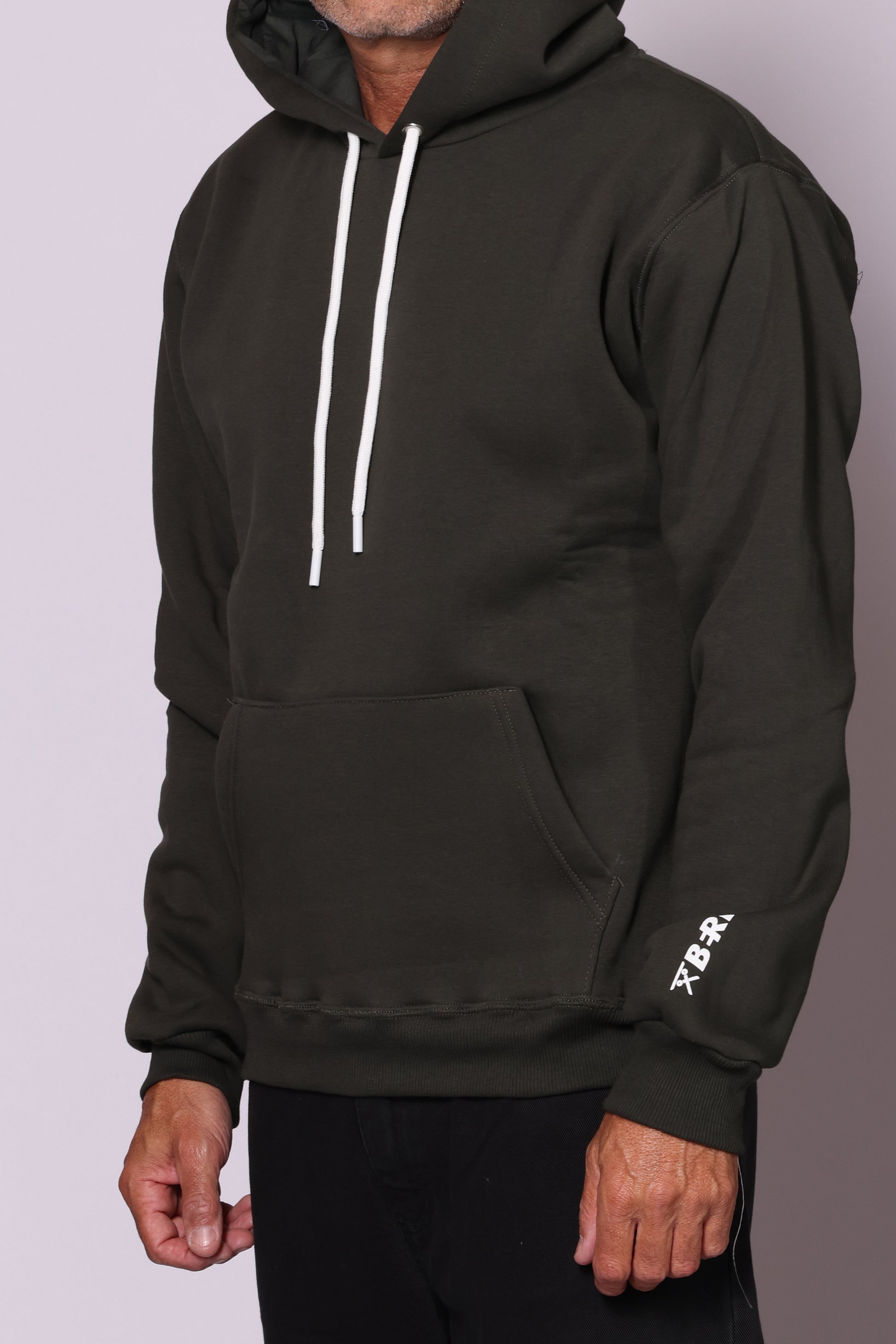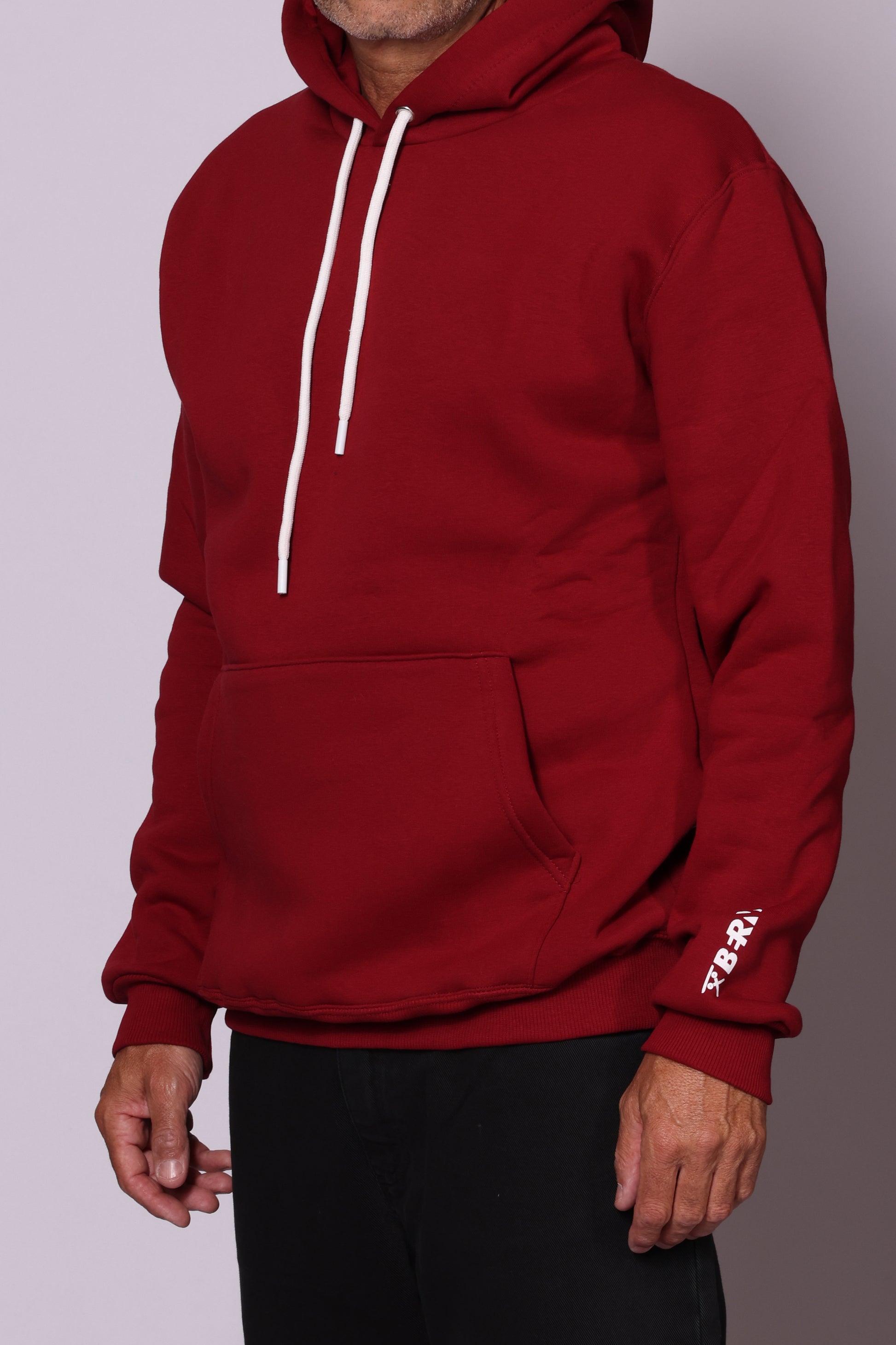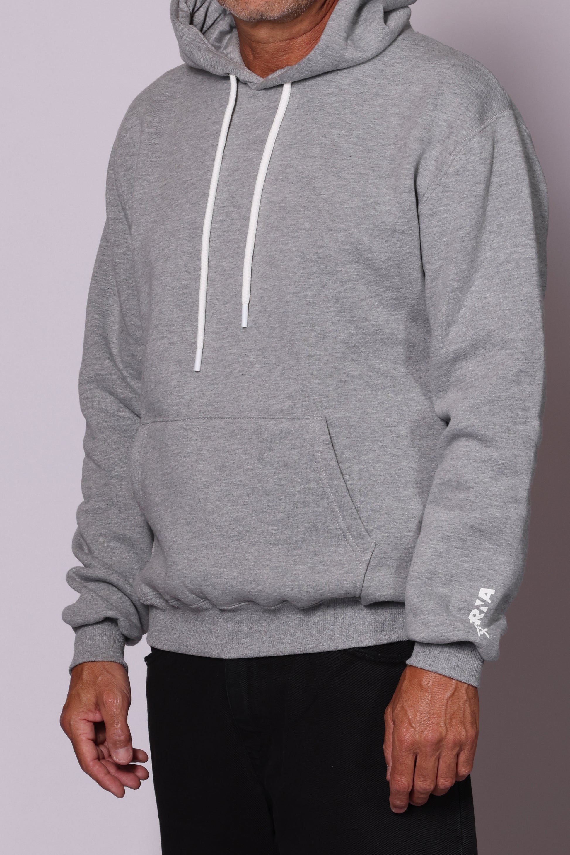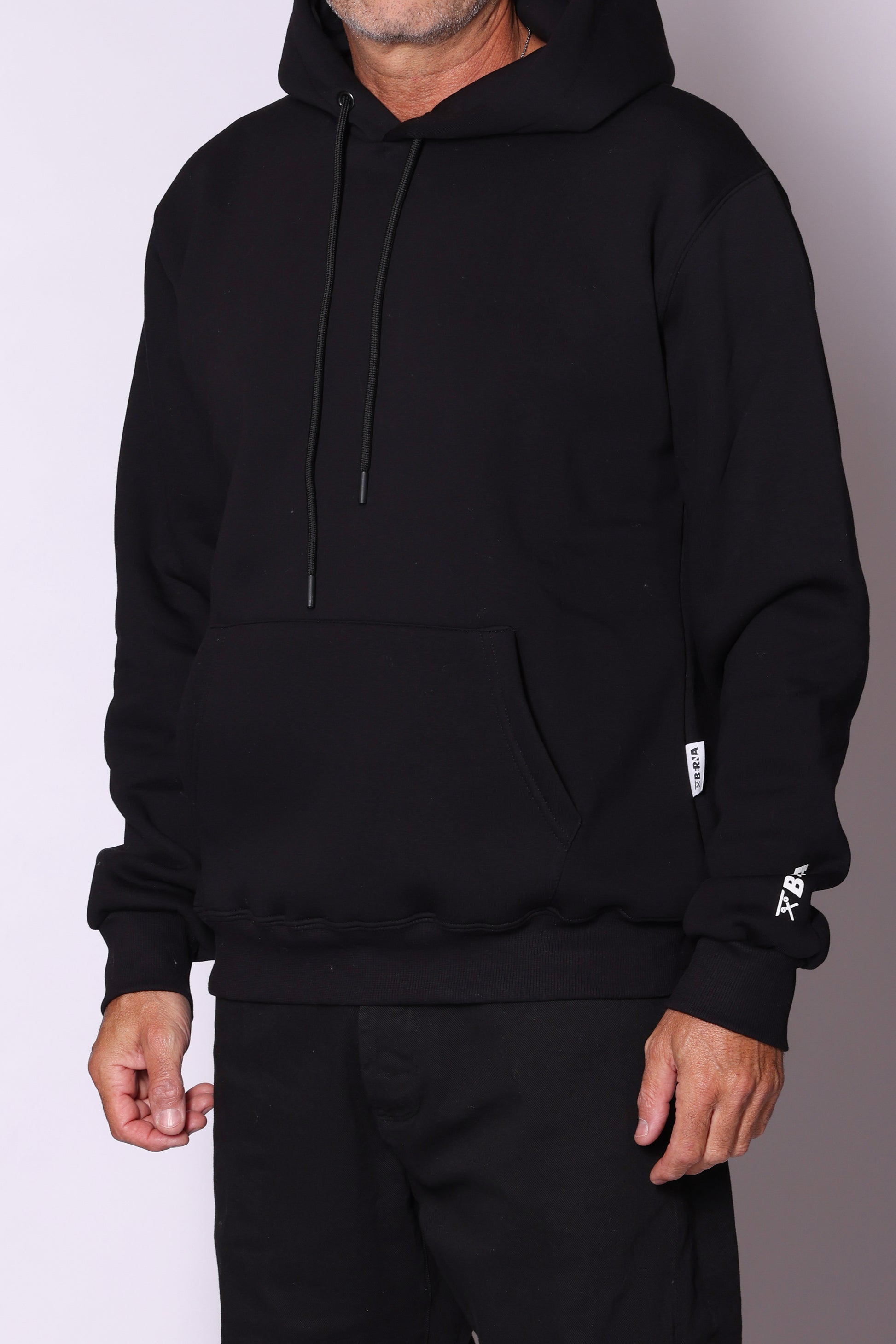 Felpa con cappuccio e tasca a marsupio sul davanti; logo stampato sulla manica. Interno pile. Composizione: 65% cotone, 35% poliestere. Il modello è alto 180 cm pesa 74 kg indossa taglia L.