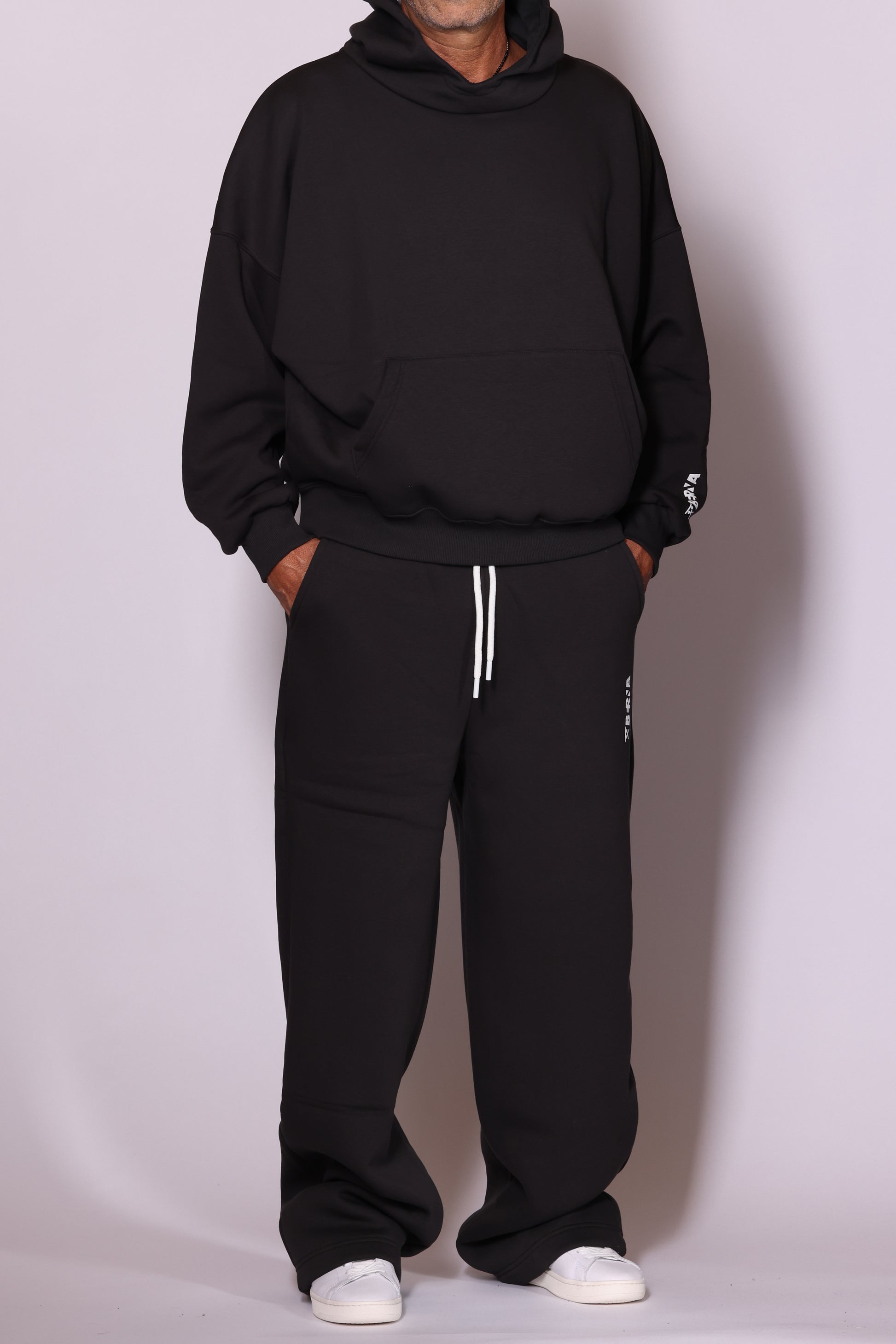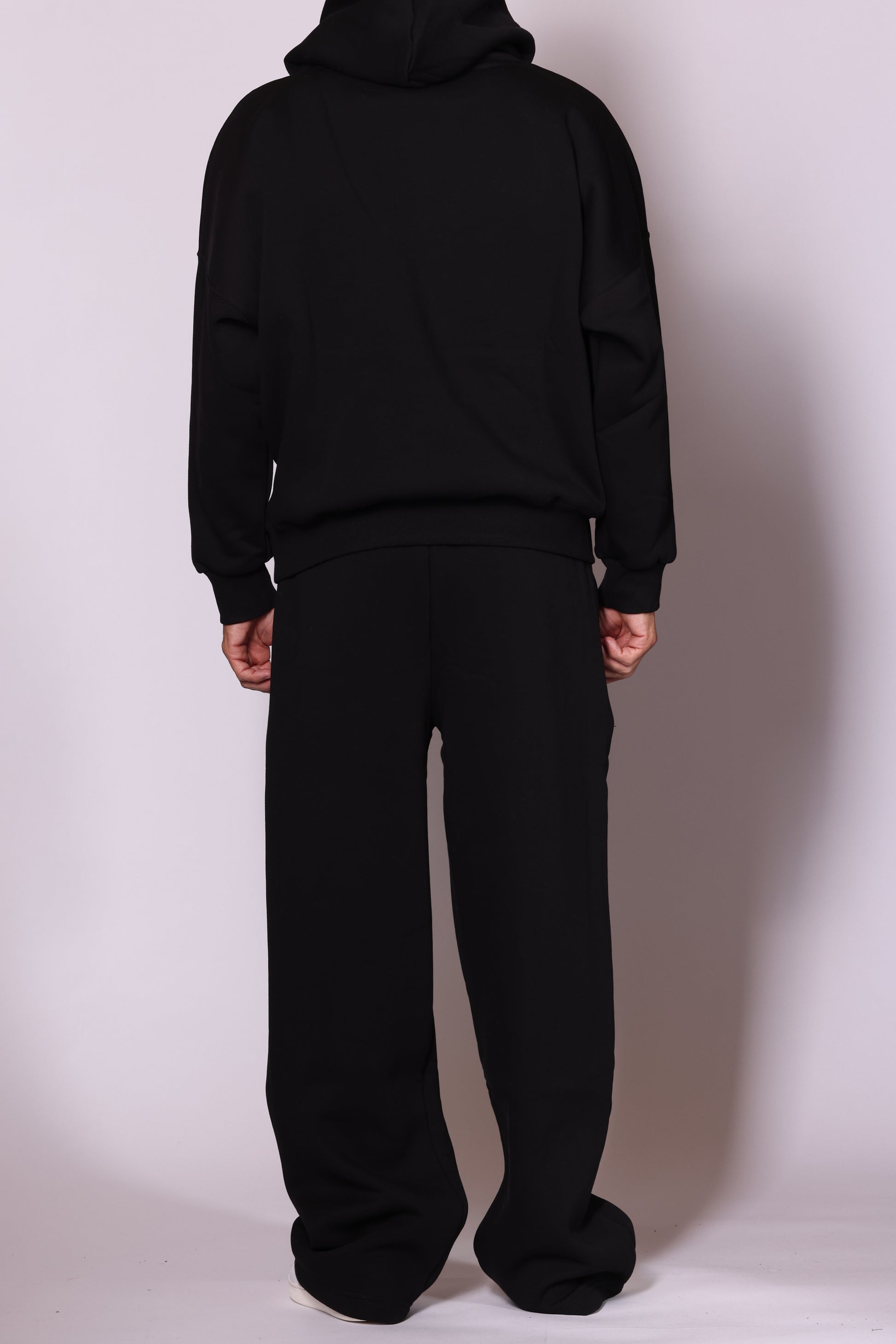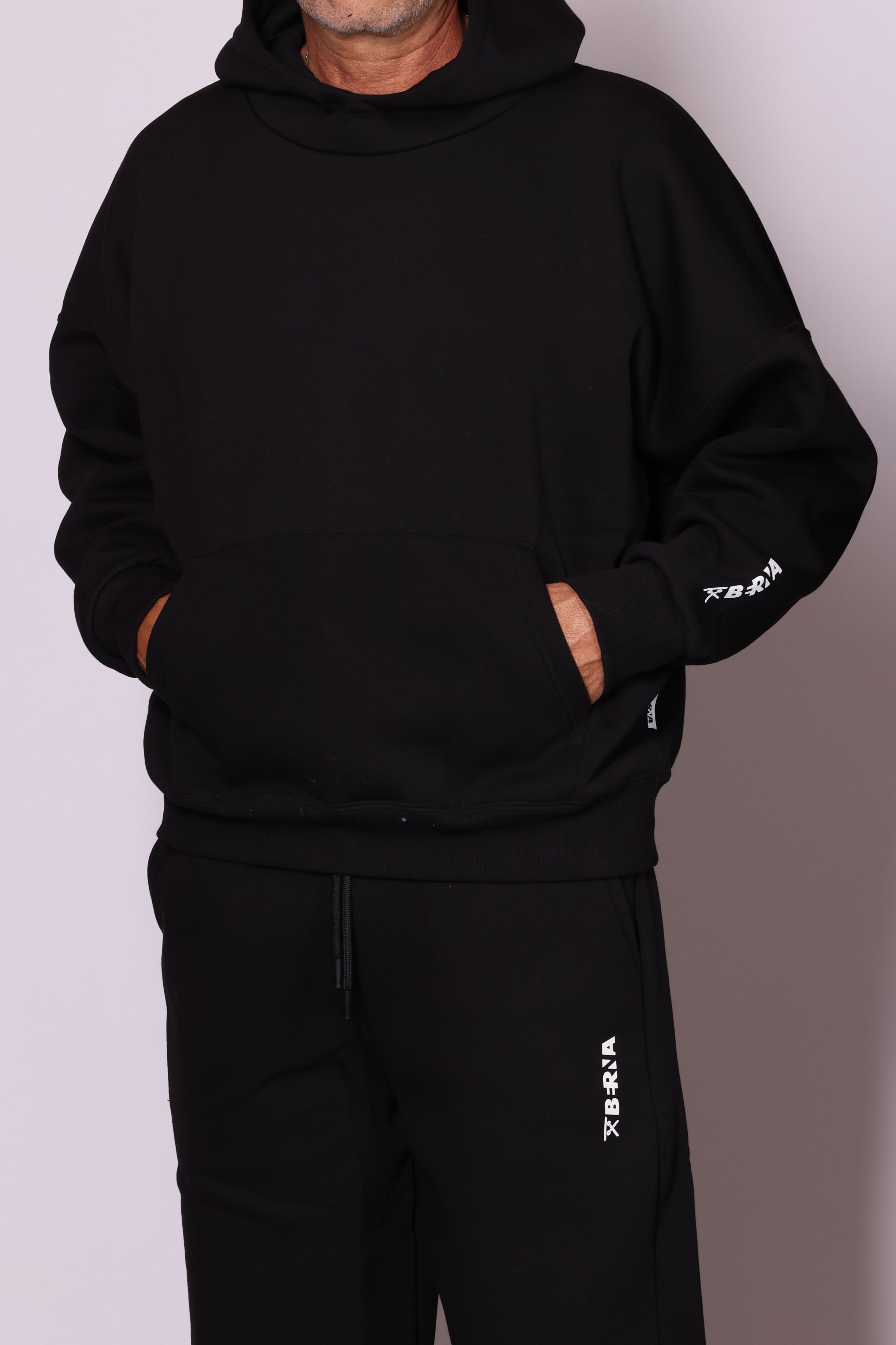 Felpa cappuccio oblò, tasca a marsupio sul davanti e logo stampato sulla manica. Interno pile. Composizione: 65% cotone, 35% poliestere. Il modello è alto 180 cm pesa 74 kg indossa taglia L.