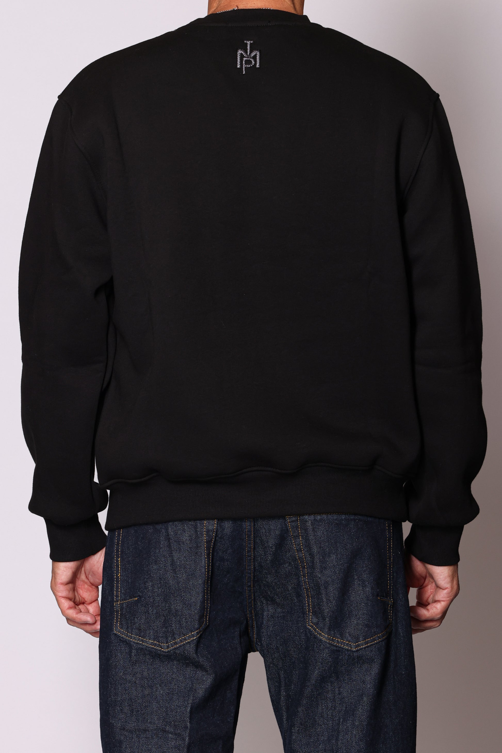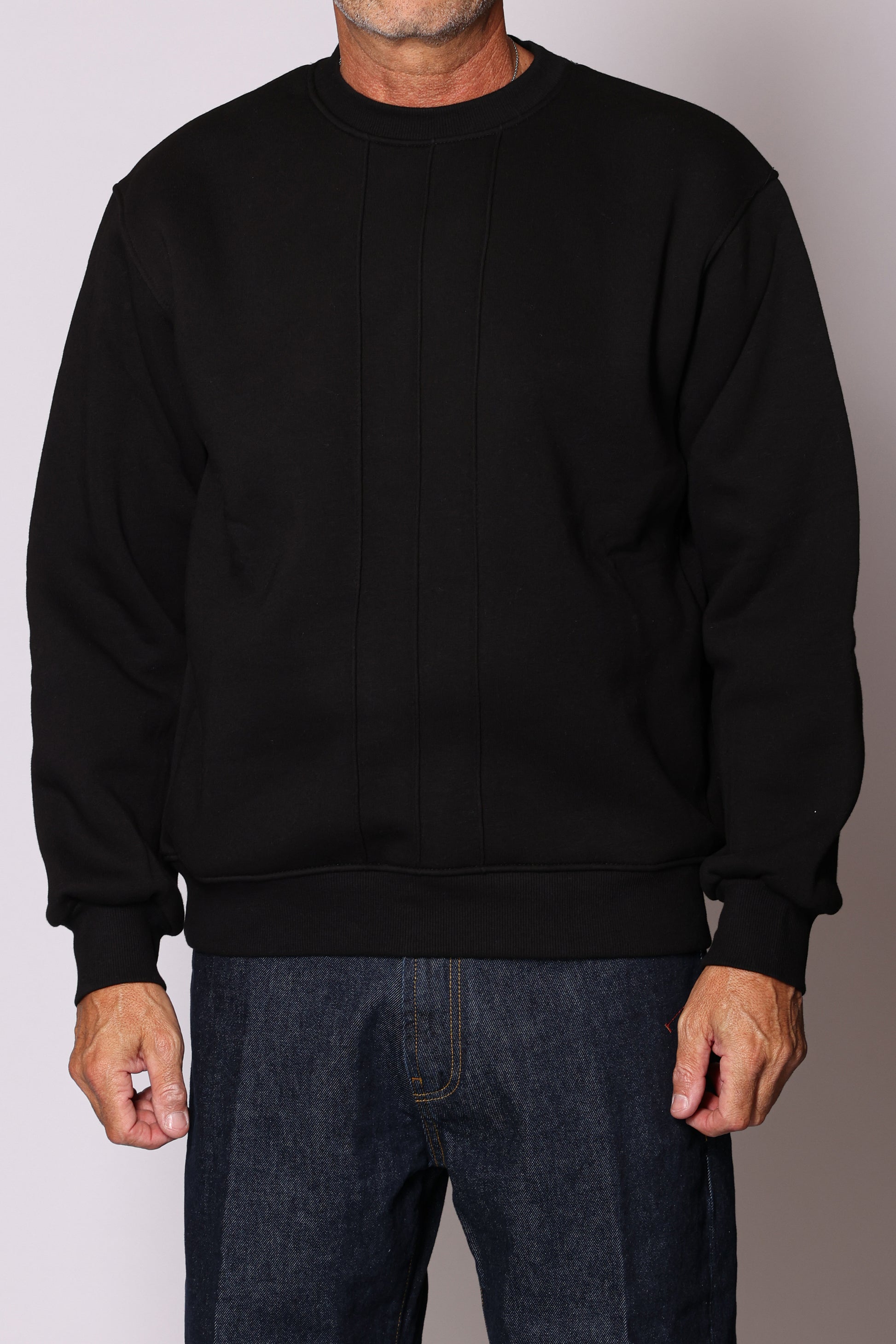 Felpa girocollo; impunture sul davanti e logo ricamato sul retro. Interno pile. Composizione: 65% cotone, 35% poliestere. Il modello è alto 180 cm pesa 74 kg indossa taglia L.