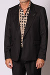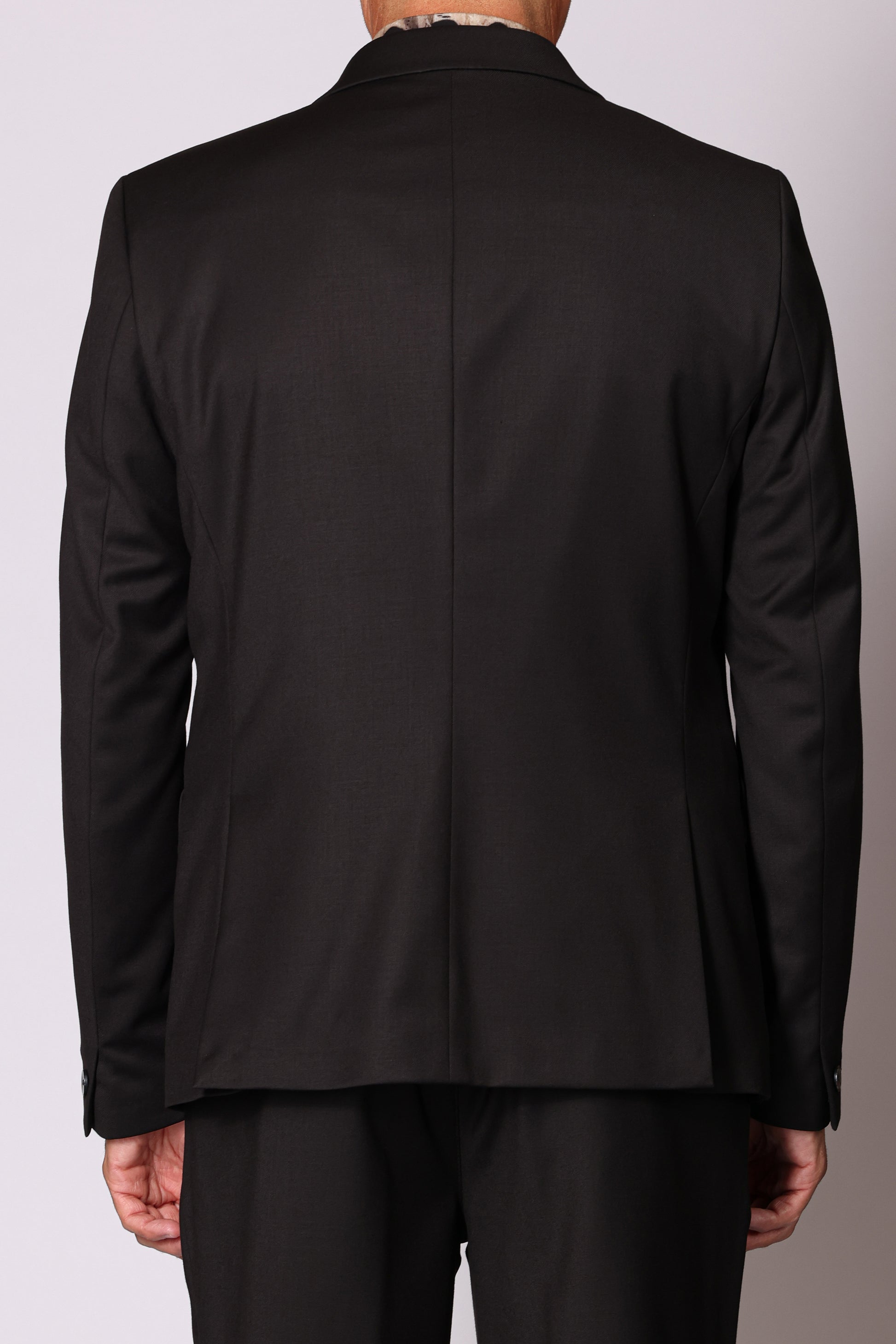Giacca doppiopetto; tasche a filo con patta sul davanti, due spacchetti laterali sul retro. Composizione: 66% poliestere, 31% viscosa, 3% elastam. Il modello è alto 180 cm pesa 74 kg indossa taglia 48.