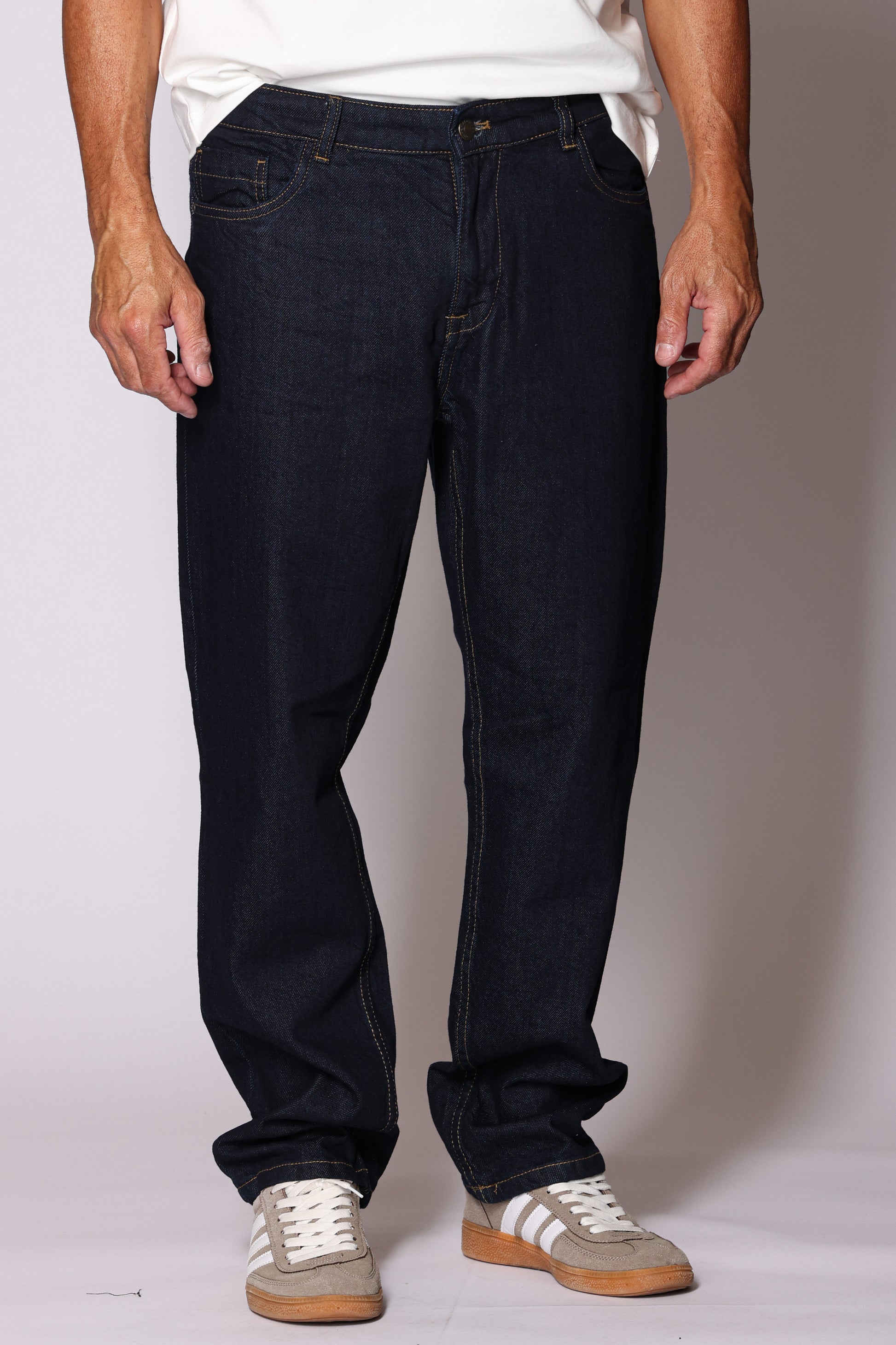 Jeans cropped denim, chiusura con bottone e zip. Composizione: 100% cotone. Il modello è alto 180 cm pesa 74 kg indossa taglia 48.