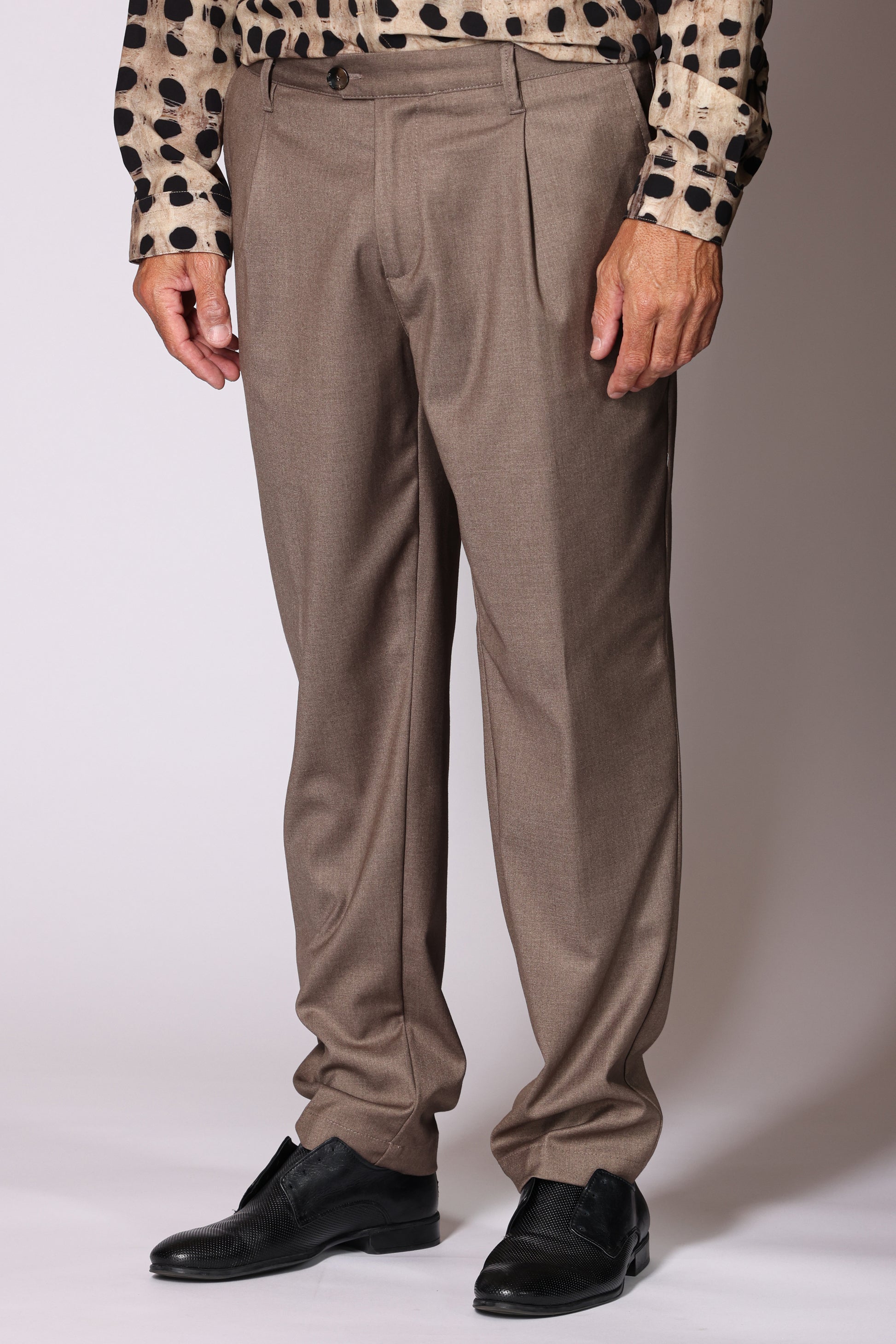 Pantalone chiusura con zip e bottone; tasche a filo laterali e posteriori. Vestibilità regolare. Composizione: 66% poliestere, 31% viscosa, 3% elastam. Il modello è alto 180 cm pesa 74 kg indossa taglia 48.